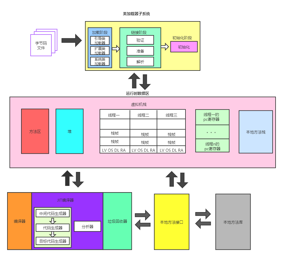 类加载子系统将.class文件进行一系列加载,加载到运行时数据区