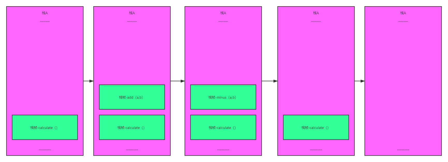 calculate在栈中的表现表现为下图(粗略来说,JVM实现时会比这个复杂一些)